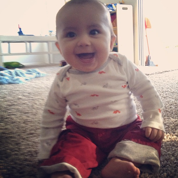 8477753510_abe0d00eee_zMeet Benjamin. He is 8 months old and getting ready to crawl. He is a smiler. He is sweet. He loves to eat. He loves his brothers and his daddy. He really loves his mama. He loves to nurse.